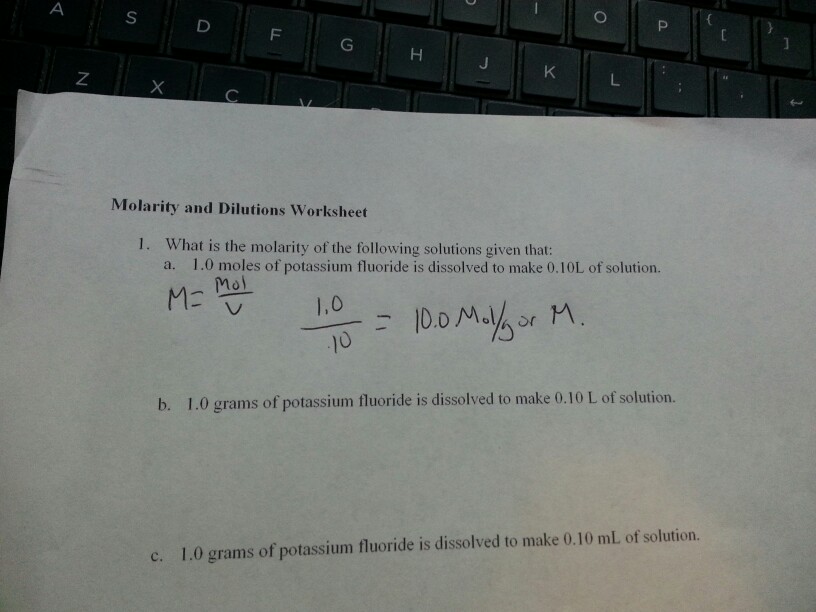 If i have 340 ml of a 0.5 m nabr solution, what will the concentration be if. Molarity and dilution practice for chemistry. Ib chemistry explanation, worksheet, and answer key. Teach your students about calculating molarity and dilutions using this great, detailed set of . There is a 1.50 m sucrose solution available; A student working in a laboratory needs 400 ml of a 0.450 m sucrose solution for an experiment. Molarity = mmy≤ ≤mm y. Will the molarity of the diluted solution be? Serial dilutions worksheet with answer key, exercises for chemistry. If 50.0 ml of a 1.75 m solution is diluted to 150 ml, what is the molarity of the final solution? Solution concentrations & dilution worksheet. For chemistry help, visit www.chemfiesta.com. This is a chemistry tutorial that covers dilution problems, including examples of how to calculate the new concentration of a diluted solution, and how to ca.